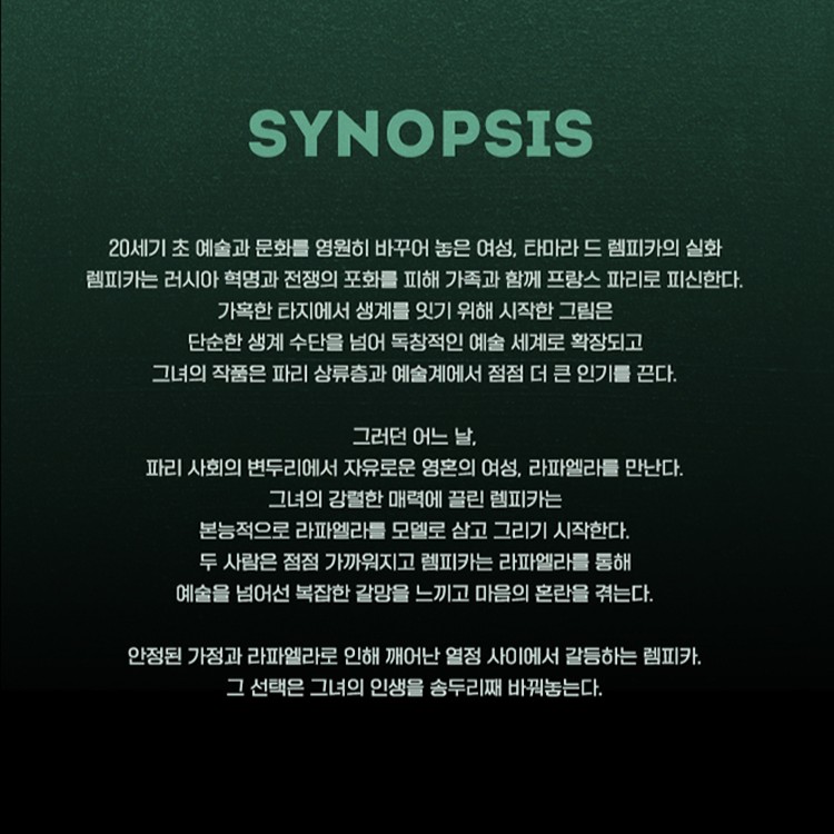 이 위대한 예술가의 여정에 동참하고자 하는 관객이라면, 각기 다른 매력을 지닌 세 명의 타마라를 통해 시대를 관통하는 그녀의 진심 어린 고백을 들어보길 권한다. ‘렘피카’는 단순한 관람을 넘어, 우리가 잃어버렸던 혹은 억눌러왔던 욕망과 예술에 대한 뜨거운 열정을 다시 일깨워주는 소중한 경험이 될 것이다.