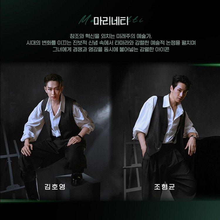 - 정선아: 화려한 무대 매너와 독보적인 음색을 지닌 그녀는 ‘아르데코의 여왕’으로서 타마라의 화려한 외면과 그 뒤에 감춰진 여성 예술가로서의 내면적 균열을 입체적으로 묘사할 전망이다.