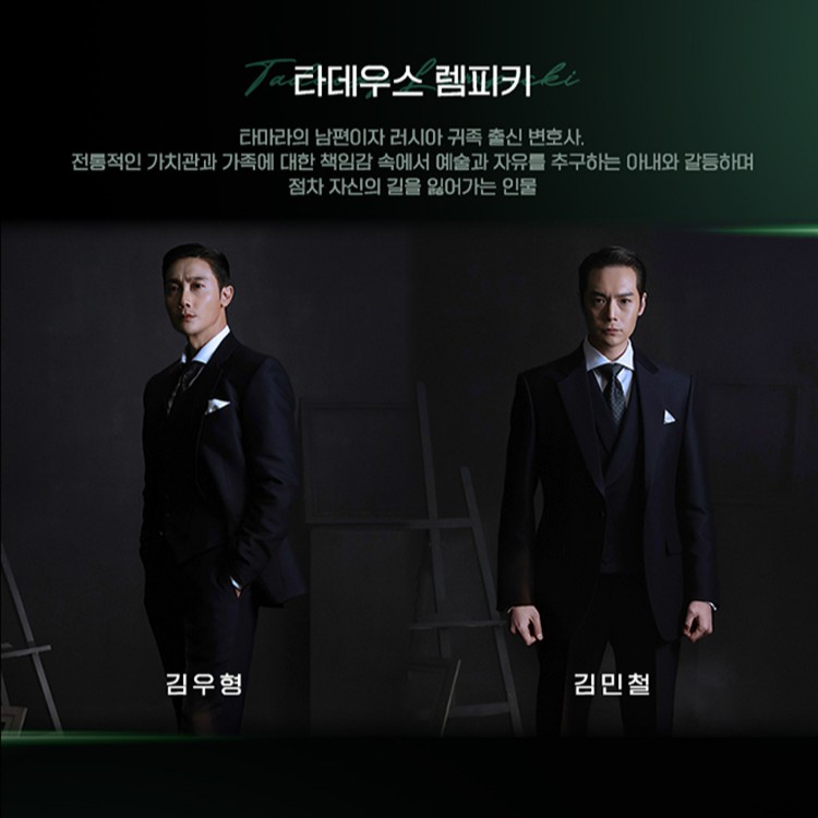 - 차지연: 폭발적인 성량과 깊은 감정 연기를 통해 타마라를 예술적 황홀경으로 이끄는 동시에 치명적인 슬픔을 안겨주는 라파엘라를 완성할 것으로 보인다.