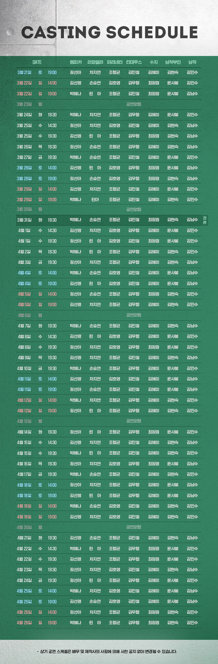| 공연 기간 | 2026년 3월 21일 ~ 2026년 6월 21일 |